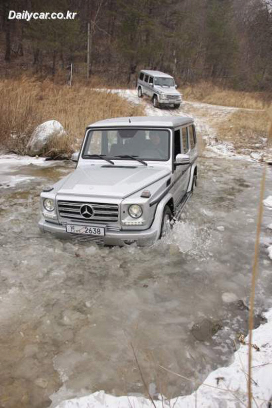정강이까지 쌓인 눈길을 G클래스가 헤쳐 나갔다. 하지만 어디가 길인지도 분간이 안 되는 순간 허리까지 차오르는 물웅덩이에 차체가 빠져든다.