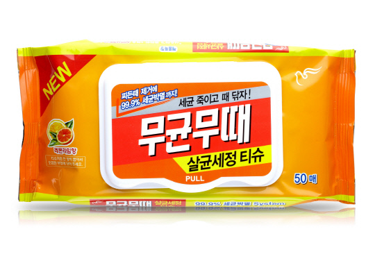 '무균무때 살균세정 티슈'는 미국 FDA에서 인정한 특수 성분 사용으로 인체유해균 박멸효과를 자랑하지만, 인체에는 안전한 제품으로 티슈처럼 한장씩 간편하게 뽑아서 사용할 수 있다는 점이 가장 큰 특징이다.