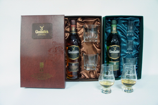 글렌피딕 12년 세트는 언더락 잔 1개, 샷 잔 2개가 15년은 언더락 잔 2개, 18년 세트는 글렌캐런(Glencairn) 글라스 2개가 포함돼 있다.