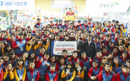 IBK기업은행(www.ibk.co.kr)이 16일 서울 고려대학교 화정체육관에서 서울 19개 지역아동센터의 아동 520명에게 각자 원하는 물건을 채워넣는 '사랑의 선물꾸러미' 행사를 열었다. 조준희 기업은행장과 이제훈 어린이재단 회장, IBK기업은행 신입행원 160여명 등이 참여해 각종 놀이기구 체험과 비보이 공연 관람 등 아이들과의 즐거운 시간을 가졌다. 이날 기업은행은 선물을 포함해 냉장고와 에어컨 등 3억원 상당의 물품을 각 지역아동센터에 전달했다. 박재호 기자 jhpark@sportschosun.com