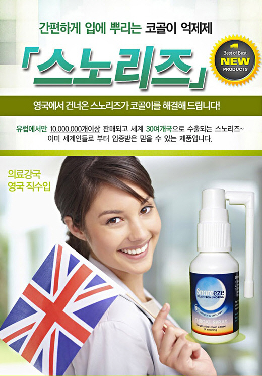 제조사측이 내세우는 장점은 크게 세 가지다. 첫째 간편성이다. 수면 전에 구강에 살짝 뿌려주기만 하면 잠자는 동안 코골이 걱정이 없다. 둘째, 안전성이다. 한국최초의 입스프레이 방식의 제품으로 식약청 의약외품허가를 받았다. 셋째, 신뢰성이다. 영국에서 직수입한 스노리즈는 유럽에서만 1천만 개 이상 판매되고 세계 30개국에서 사용될 정도로 기술력을 인정받고 있다.