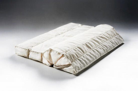베개의 목뼈 부분을 받쳐주는 부분은 상대적으로 머리를 받쳐주는 부분보다 지지력이 더 강해야 하기 때문이라는 이유에서다.