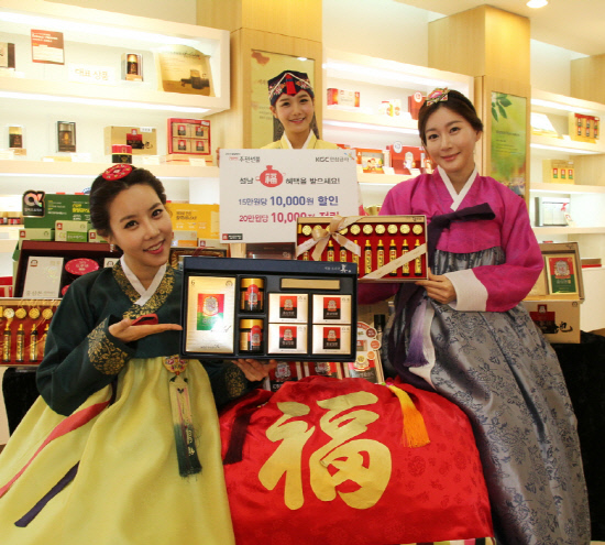 수년간 선물세트 단일품목 1위를 기록하고 있는 정관장 홍삼은 1월 24일부터 2월 9일까지 구매금액 15만원당 1만원의 가격 혜택과 포인트 적립, 제품 증정 등 경기침체로 가벼워진 소비자의 주머니 사정을 고려해 고객들에게 실질적인 혜택을 제공하는 다양한 행사를 마련하였다. 자세한 행사 내용은 홈페이지(http://event.kgcmembers.or.kr)에서 확인 할 수 있다.