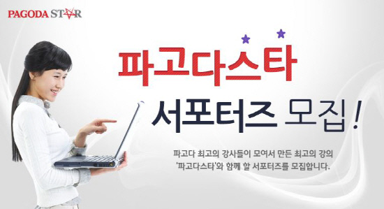 파고다SCS의 온라인 외국어 학습 사이트인 '파고다스타'(www.pagodastar.com)가 2월 1일까지 일반인 대상 서포터즈 50명을 모집한다.