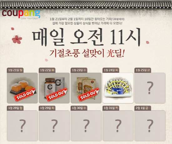 오픈마켓도 설을 맞아 특정시간에 맞춰 진행되는 특가상품 이벤트에 열을 올리고 있다.