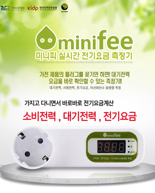 미니피는 사용자들에게 전기 사용량을 직접 보여주는 가정용 전력측정기다. 미니피를 콘센트에 꽂으면 소비전력과 전기 요금이 모니터에 나타난다. 또 대기전력도 표시된다. 게다가 이산화탄소 발생 예측량도 표시된다. 전기값이 줄줄 새는 것은 보면 소비자가 불필요한 전기 사용은 억제하는 게 당연하다.