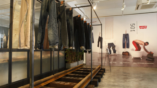 가장 먼저 눈에 띄는 점은 리바이스의 아이콘인 '501'의 클래식 핏이 140년 만에 업그레이드 되어 슬림한 라인으로 출시되었을 뿐 아니라 논-데님(Non-denim) 소재와 컬러진까지 선보였으며, 1930년대부터 2013년까지 변화된 '501'의 히스토리를 한눈에 확인할 수 있는 다양한 디스플레이가 이목을 집중시켰다.