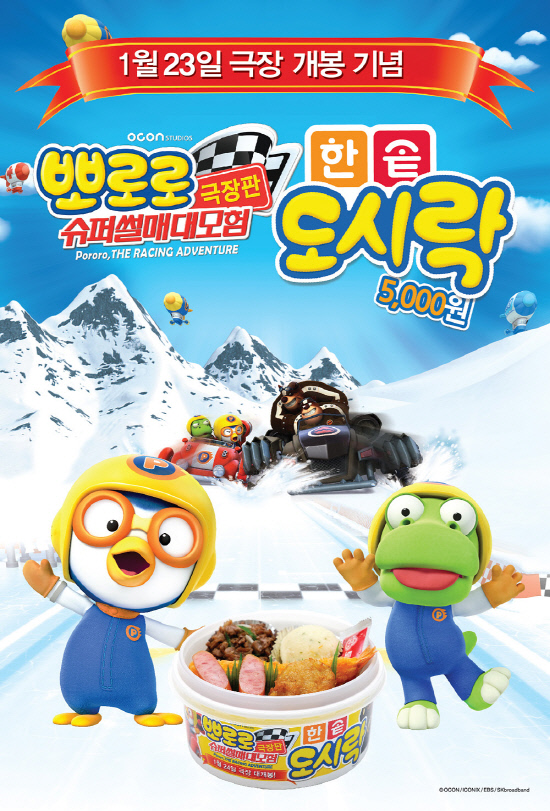 도시락 프랜차이즈 한솥도시락(www.hsd.co.kr)이 인기 캐릭터 뽀로로와 함께 '뽀로로 극장판 슈퍼썰매 대모험 어린이도시락'(이하 '뽀로로 극장판 어린이도시락')을 한정 출시했다.