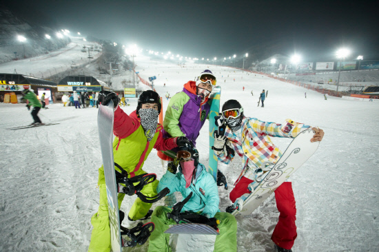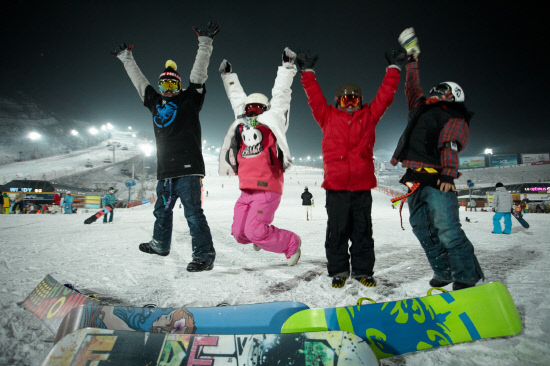 | 곤지암 스키장을 찾은 야간 보더들이 포즈를 취하고 있다. |