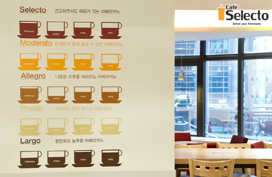 소비자들의 기호와 맛에 각별하게 신경을 써 내세운 카페 셀렉토의 다섯가지 아메리카노는 그의 대표적인 예이다. 커피전문점의 가장 기본이 되며 중요한 원두 본연의 맛을 이끄는 아메리카노를 다섯가지 특징과 컨셉을 살린 맛으로 내세워 고객에게 카페 셀렉토의 맛을 충실하게 어필하고 있다.