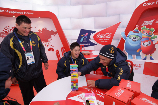 1968년 스페셜올림픽의 시작부터 가장 오랜 기간 함께 해 온 코카-콜라사는 강원도 평창의 알펜시아 컨벤션 센터 1층 로비에 '코-크 해피니스 자판기'를 마련하고 많은 선수 및 소비자들이 스페셜올림픽 도우미로 활동하고 있는 폴라베어와 함께 다양한 미션을 수행하면 목도리, 장갑, 스노우보드, 피자 등 '서프라이즈 선물'을 받을 수 있는 행사를 진행하며 스페셜올림픽 개막일 화제의 중심이 되었다.