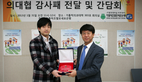이번 감사패 전달은 의대협이 지난 2012년 한 해 동안 적극적으로 조혈모세포 기증운동을 펼친 데 대한 감사의 의미로 마련됐다.