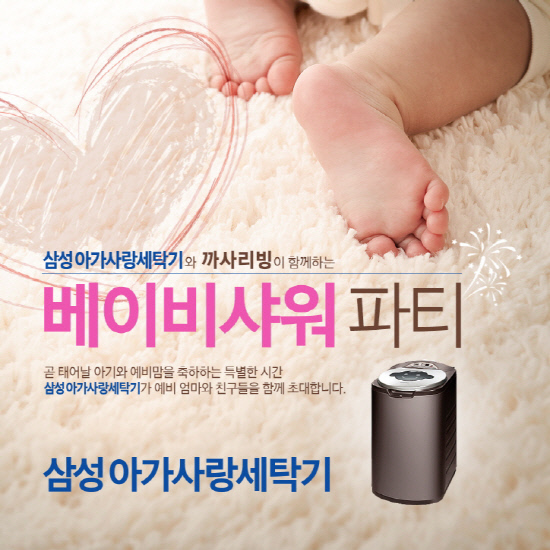 이벤트 응모는 오는 11일까지 진행되며, 까사리빙 홈페이지(www.casa.co.kr)에서 자세한 행사 내용을 확인 할 수 있다. 삼성전자 관계자는 "삼성 아가사랑세탁기는 예비 엄마들 사이에서 필수 출산준비물로 여겨질 만큼 호평을 받고 있는 워너비 제품이다"며, "행사에 참여하시는 예비 엄마들이 삼성 아가사랑세탁기와 함께 건강한 출산 및 행복한 육아 라이프를 누릴 수 있길 바란다"고 말했다.