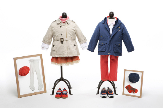 또한 발랄함과 멋스러움을 더욱 강조해 줄 오렌지 컬러의 여아용 베레모와 구두, 네이비 컬러의 남아용 비니와 운동화를 각각 선보이며, 실내에서도 포인트를 줄 수 있는 귀엽고 경쾌한 스트라이프 양말로 깜찍한 멋을 더했다.