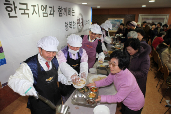 한국지엠 임직원들이 설립한 사회복지법인 '한국지엠한마음재단'(이하 한마음재단)이 민족 전통 명절인 설을 맞아 지역 저소득층 어르신들에게 떡국을 대접하고 선물을 전달하는 행사를 가졌다.