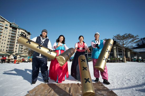 오크밸리=9~10일 이틀간 골프빌리지 야외 광장에서 윷놀이, 제기차기, 투호 등의 민속놀이 한마당을 펼친다. 치어리더와 함께 하는 가족 대항 전통놀이, 직접 연을 만들어 날리기를 겨루는 연 날리기 대회도 실시한다. 연휴기간 콘도 체크인 시 복주머니를 주고, 손글씨 전문가의 새해 덕담이 담긴 캘리그라피 증정 이벤트도 실시한다.