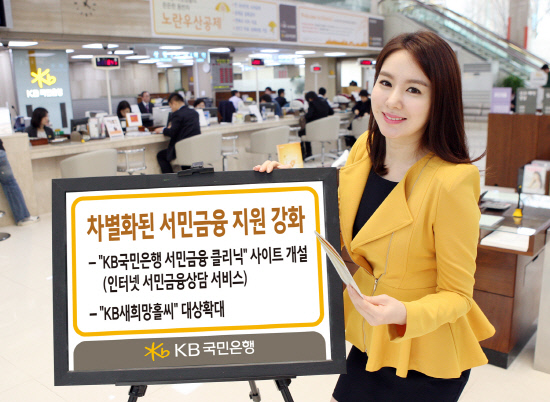 KB국민은행(은행장 민병덕)은 정부의 서민금융 정책에 부응하고 가계 부채 연착륙에 도움이 될 수 있도록 인터넷 서민금융상담 서비스인 'KB국민은행 서민금융 클리닉'을 개설하는 등 차별화된 서민금융을 지원한다.