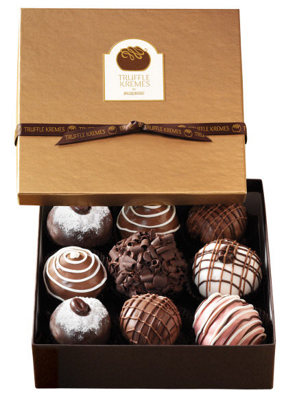 크리스피 크림 도넛은 초콜릿뿐만 아니라 도넛을 동시에 즐길 수 있는 신개념 제품 '트러플 크림'을 선보이고 있다. 크리스피 크림 도넛에서만 맛 볼 수 있는 독특한 제품 '트러플 크림'은 깊고 진한 초콜릿 속에 부드러운 도넛과 각종 달콤한 크림을 채워 다양한 식감을 더한 것이 특징이다. 상큼한 맛의 '스트로베리 크림'에서부터 진한 초콜릿 맛의 '더블 초코 크림', '초코렛 카라멜 크림' 등 총 6종으로 구성되어 있으며, 고급스러운 패키지에 담겨 있어 발렌타인 선물로 좋은 반응을 얻고 있다.