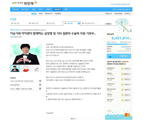 다음커뮤니케이션의 사회공헌 서비스인 '희망해(hope.daum.net)'에서 스타의 이름으로 나눔에 앞장서는 팬들의 아름다운 활동이 이어지고 있다.