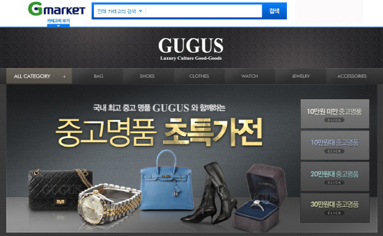 옥션은 지난해 1월 중고명품 회사인 '고이비토'와 제휴해 100% 정품을 유통, 다양한 명품브랜드 제품을 판매하면서 특히, 가방, 시계, 신발 등 중고명품 잡화수요가 늘었다.