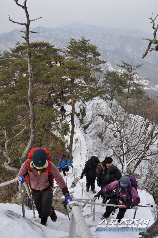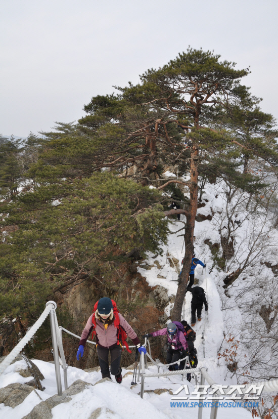 춘천 토박이인 이기남씨는 딸 이수진씨와 함께 참여했다. 그동안 3번 정도 와봤다지만, 딸과는 처음이란다. 이제 출가외인이 된다면 부녀의 오봉산 산행은 어쩌면 이번이 처음이자 마지막일 터. 이를 잘 알고 있는 아버지는 산행이 서툰 딸의 발 놓는 위치까지 일일이 알려주며 지극정성이다. 부녀의 정이 추운 겨울을 녹인다.