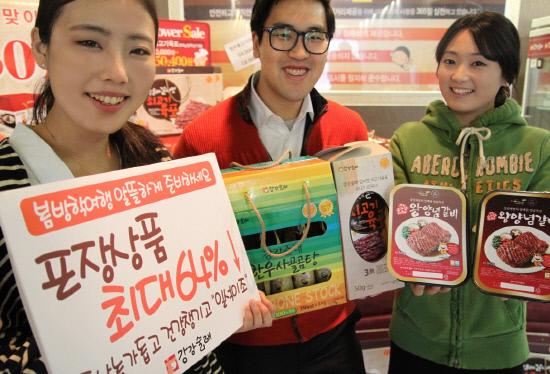 HACCP 인증시설에서 방부제·색소·조미료 등을 넣지 않고 생산된 간편가정식 한우사골곰탕 대용량세트(800ml/5팩/15인분)는 3만7800원, 소용량세트(350ml/5팩/10인분) 2만2000원, 아토피 원인인 방부제를 뺀 영양간식 갈비맛 쇠고기육포(50g/6봉)는 2만5200원 등 30% 할인가로 구매 가능하다.