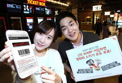 KT(회장 이석채)가 LTE 워프 고객들에게 무료 영화관람권과 스키장 리프드권 등 풍성한 혜택을 제공하는 'WARP 체인지업' 이벤트를 진행한다. WARP 체인지업은 1일부터 3월 29일까지 LTE 620 이상 요금제에 가입하는 고객을 대상으로, 5월까지 매월 CGV 무료 영화관람권 1매와 동반 1인 할인혜택(평일 2천 원, 주말 3천 원)을 제공한다.