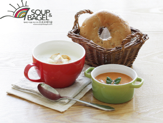 '수프앤베이글'은 현대인들의 아침식사를 책임지기 위해 매일 새벽 정성들여 수프를 끓인다. 신선한 재료로 매일 아침 수프를 끓이고 천연효모를 사용해 베이글을 만든다. 수프와 베이글, 샌드위치, 와플, 스콘, 브라우니, 샐러드 등 인스턴트가 아닌 수제 메뉴만 취급한다.