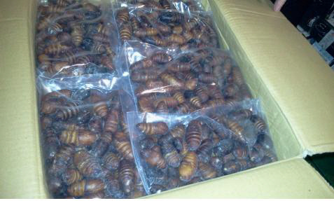 식용으로 사용할 수 없는 '산누에나방 번데기'를 원료로 만든 '냉동번데기'. 사진출처=식약청 홈페이지 |