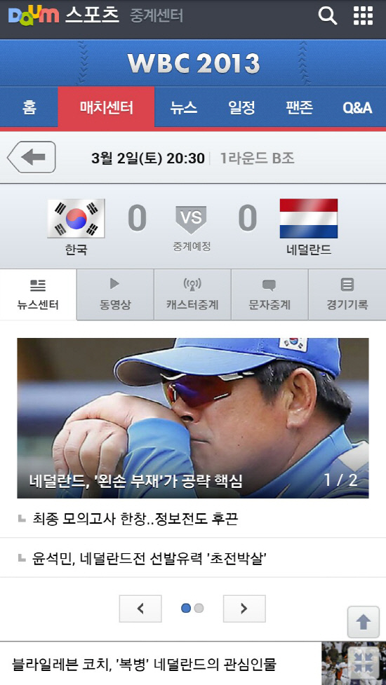 한편, Daum앱과 다음 모바일웹(m.daum.net) 첫 화면에서 'WBC 2013' 특집페이지에 접속할 수 있으며, Daum앱 서비스 서랍이나 휴대폰 바탕화면에 바로가기를 추가해두면 보다 편리하게 해당 서비스를 이용할 수 있다. 송진현 기자 jhsong@sportschosun.com
