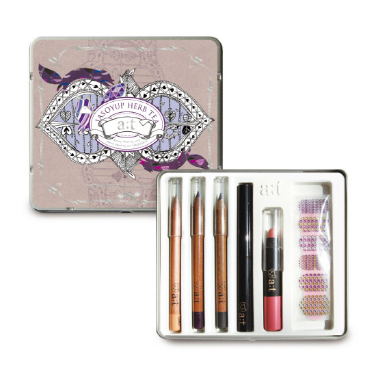 뷰티 토탈 브랜드 ㈜에이디앤티에서 런칭한 국내 최초 차(茶) 뷰티 브랜드 에이티폭스(www.atfox.co.kr)의 자소엽, 홍차, 귤피 3가지 라인으로 구성된 메이크업 키트는 예쁜 틴케이스 제품으로 더 유명하다.