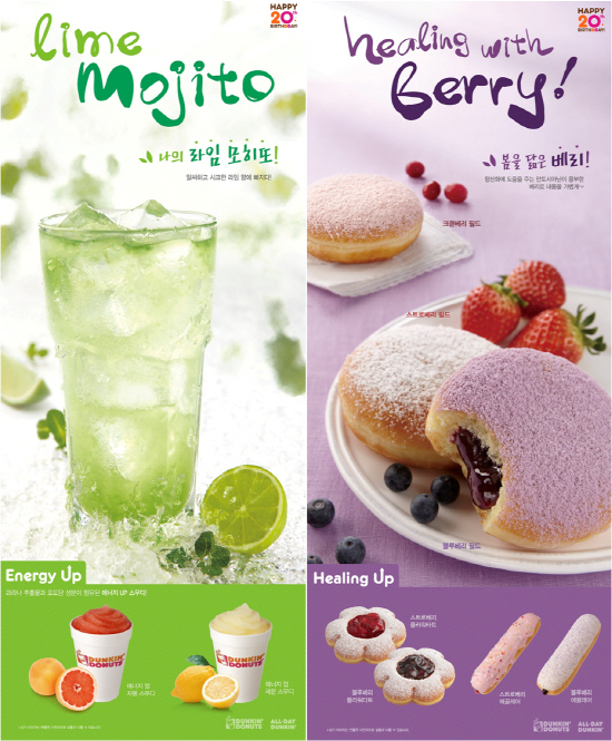 던킨도너츠(www.dunkindonuts.co.kr)가 봄을 맞아 제철 과일을 활용한 '힐링 업' 도넛 8종과 상큼한 과일향으로 봄을 알리는 '에너지 업' 음료 3종을 출시한다고 밝혔다.