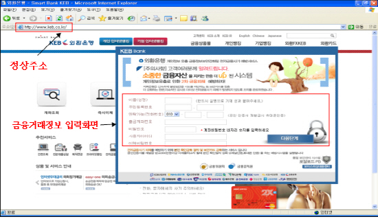 | 파밍에 의해 유도된 피싱사이트. 사진출처=금융감독원 홈페이지 |