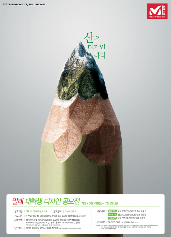 아웃도어 브랜드 밀레가 전국 대학(원)생을 대상으로 티셔츠, 반다나(목에 두르는 등산용 스카프) 디자인 공모전을 오는 4월 8일까지 실시한다.