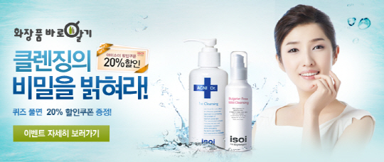 또한 아이소이는 소비자들이 모르고 사용했던 '클렌징의 비밀'과 관련한 OX퀴즈 이벤트를 통해 보다 재미있게 내용을 접할 수 있도록 하였으며, 퀴즈의 정답을 맞춘 모든 소비자들에게는 3월 31일까지 사용할 수 있는 20%할인 쿠폰을 증정한다.
