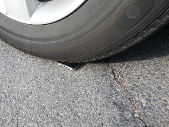 자동차 바퀴로 수차례 깔고 지나가도 스마트폰이 깨지지 않고 멀쩡하다면?