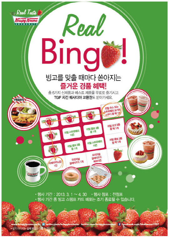 크리스피 크림 도넛 관계자는 "소비자들이 계절의 산뜻함을 느낄 수 있도록 신선한 딸기의 맛을 그대로 담은 리얼 테이스트 스트로베리를 활용한 '리얼' 이벤트를 진행하게 됐다."며 "크리스피 크림 도넛에서 준비한 '리얼'이벤트를 통해 행운의 즐거움은 물론 봄의 정취를 느끼길 바란다."고 전했다.