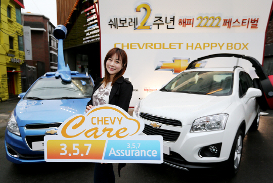 한국지엠은 7일, 서울 삼성동 코엑스(COEX)에서 쉐보레 브랜드 국내 도입 2주년을 기념해 기존의 혁신적인 고객 케어 프로그램인 쉐비 케어 3.5.7과 더불어 '쉐비 케어 3.5.7 어슈어런스(Chevy Care 3.5.7 Assurance)'를 7일부터 추가로 시행하며, 3월부터 한 달 동안 대대적인 고객 감사 이벤트를 개최한다고 밝혔다.