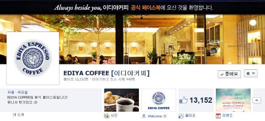 이디야 커피 관계자는 "최근 소비자들의 커뮤니케이션은 온라인을 통해 다양하게 이루어지고 있어 소비자들을 위한 다양한 페이스북 이벤트를 마련했다."며 "이벤트 외에도 사회공헌을 통해 이디야 커피가 착한기업으로 성장해 나가는데 토대가 될 수 있는 커피나무 성장 활동 등의 착한기업 활동과 에코캠페인 등을 펼쳐나갈 예정"이라고 밝혔다. 박재호 기자 jhpark@sportschosun.com