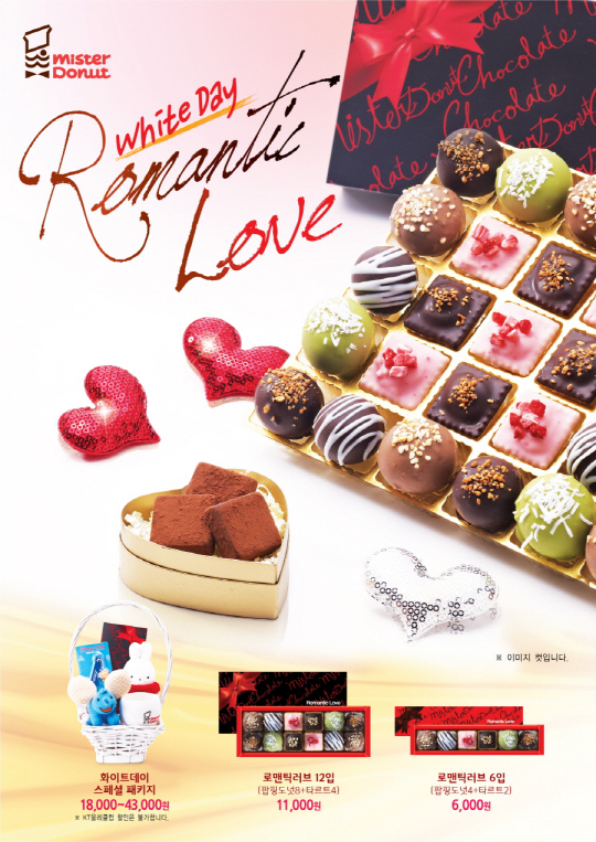 한편, 로맨틱러브는 달콤한 초콜릿 속에 촉촉하고 부드러운 도넛이 숨어있는 팝핑도넛과 바삭한 타르트 속에 달콤한 크림이 듬뿍 들어있는 미스도타르트로 구성된 상품으로 발렌타인 한정 상품이었으나 고객들의 큰 호응에 힙입어 화이트데이까지 연장 판매하는 세트다.