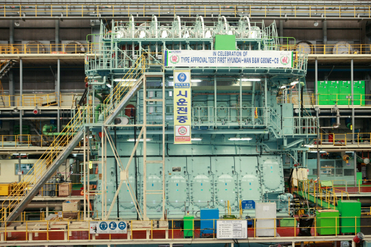 | ◇현대중공업에서 형식승인 테스트 중인 친환경 고효율 G-타입 엔진. |