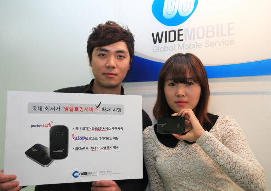 와이드모바일은 미국과 일본을 방문하는 알뜰로밍서비스 여행자에게 속도가 늦는 무늬만 LTE가 아니라, 진짜 LTE인 포켓와이파이(4GLTE지원)를 제공한다. 여행자가 현지에 도착하여본인의 LTE폰으로 포켓와이파이의 와이파이 신호를 잡아 4G LTE을이용할 수 있다. 만약 여행자가 4G 커버리지를 벗어날 경우에는자동으로 3G로 전환하여 데이터를 끊김 없이 사용할 수 있다.