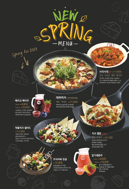 핸드 쿡드 다이닝 펍 와라와라(대표 유재용)는 새로움이 충만한 계절 봄을 맞아 신메뉴 7총을 출시하고 기존 메뉴를 리뉴얼해 매장을 새단장했다고 14일 밝혔다.