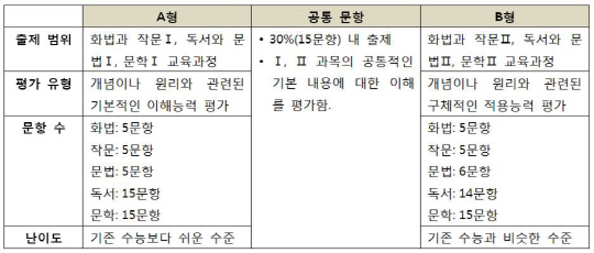 2014학년도 대학수학능력시험 체제에 맞춰 A, B형으로 출제된 이번 학력평가 국어영역은 지난해 5월에 실시한 예비시행을 그대로 따라 과목별 지문 구성과 문항 배분이 동일했으며, 공통 문항도 과학, 고전시가 세트로 설정, 지문 구성이 같았다. 화법, 작문, 문법과 독서 영역의 경우에는 A형은 Ⅰ교과서 성취기준, B형은 Ⅱ교과서 성취기준을 따라 A형보다 B형이 다소 어렵거나 비슷했다.