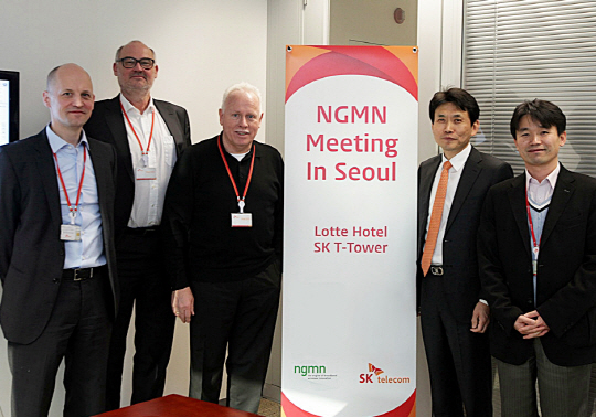 19일 SK텔레콤 본사와 롯데호텔에서 열린 차세대 모바일 네트워크의 빠르고 안정적인 상용화를 국제적으로 논의하기 위한 NGMN 회의에 SK텔레콤 변재완 CTO(사진 오른쪽 두번째)와 NGMN 사무국 멤버가 참석했다.