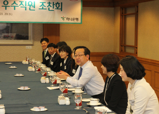 그 일환으로 금일 아침 어려운 영업환경에서도 그동안 묵묵히 정도영업과 금융소비자보호를 실천해 온 우수 직원들과 은행연합회 뱅커스클럽에서 조찬을 함께 하며 칭찬 격려하였고 영업현장의 애로사항도 청취하였다.