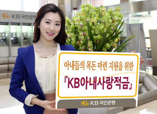 KB국민은행(www.kbstar.com)이 26일 아내들의 목돈 마련을 지원하기 위한 여성 전용 적금 상품인 'KB아내사랑적금'을 출시했다.