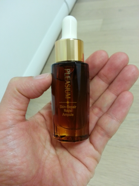참존 플레지엄 스킨-리페어 로얄 앰플은 뚜껑을 열자마자 달콤한 향이 확 퍼져나간다. '쫀득쫀득'하지만 피부에 빠르게 스며든다.