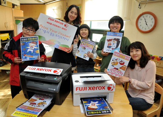 기부는 후지제록스 프린터스 '세상을 프린트하다' 캠페인의 사회공헌활동으로 '아이들의 꿈을 프린트하다'라는 주제로 진행됐다. 시각의존도가 높은 청각장애아동들이 보다 질 좋은 인쇄자료를 통해 교육을 받을 수 있도록 도와주자는 취지다.