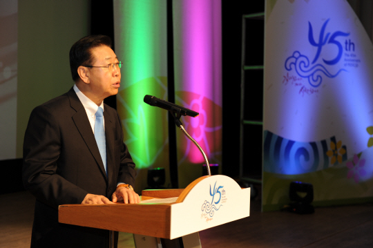 포스코는 29일 45주년 창립기념식을 열고 전임직원이 '새로운 출발 다짐'을 선언하며 글로벌 경기침체로 인한 위기를 극복하자는 의지를 다졌다.정준양 회장은 "이 시대가 요구하고 있는 창조경제가 무(無)에서 유(有)를 창조한 포스코의 창업정신과 다르지 않으므로, 창업정신으로 재무장해 영원한 글로벌 No.1 철강사라는 시대적 과업을 완수하자"고 강조했다.
